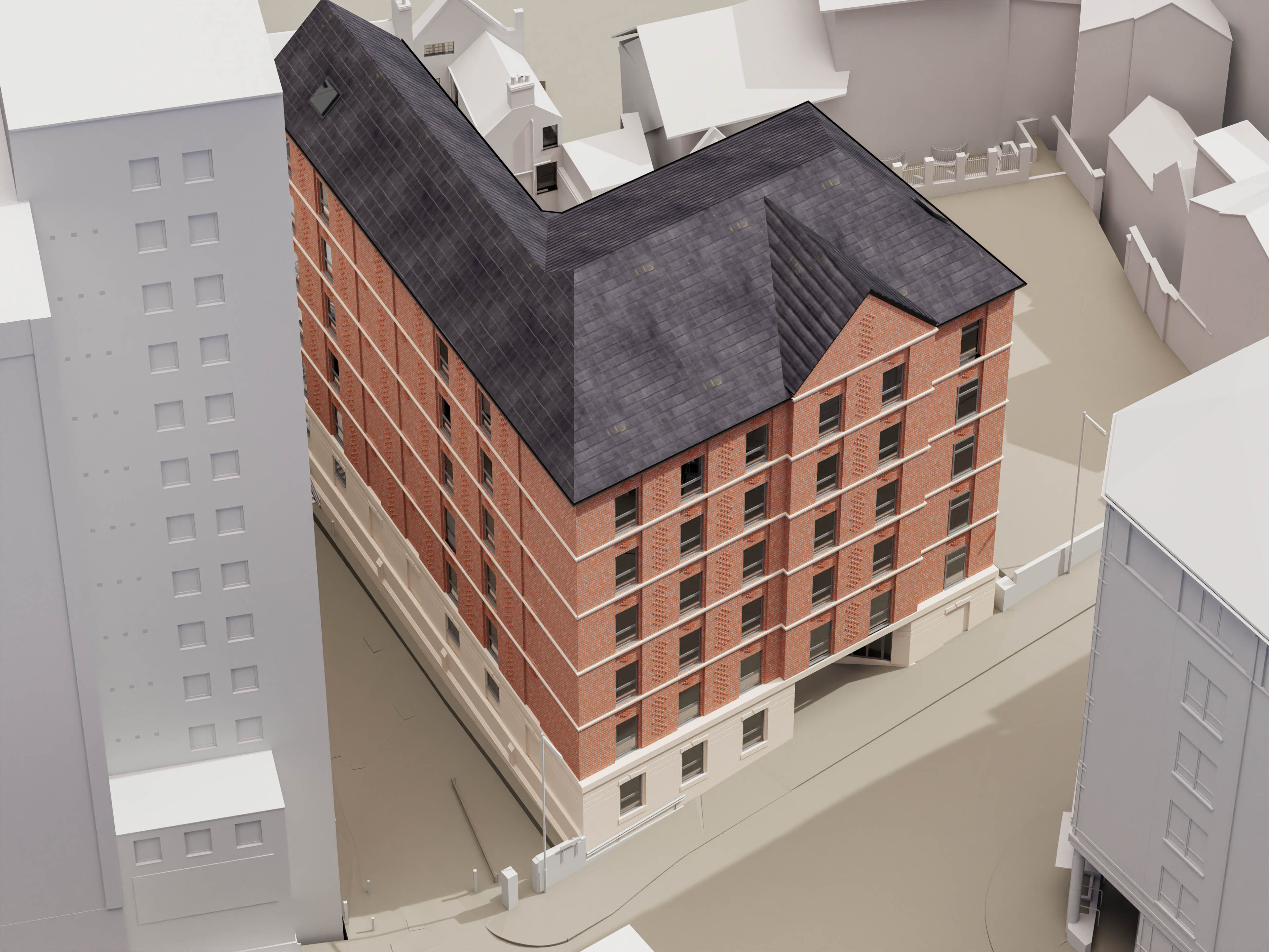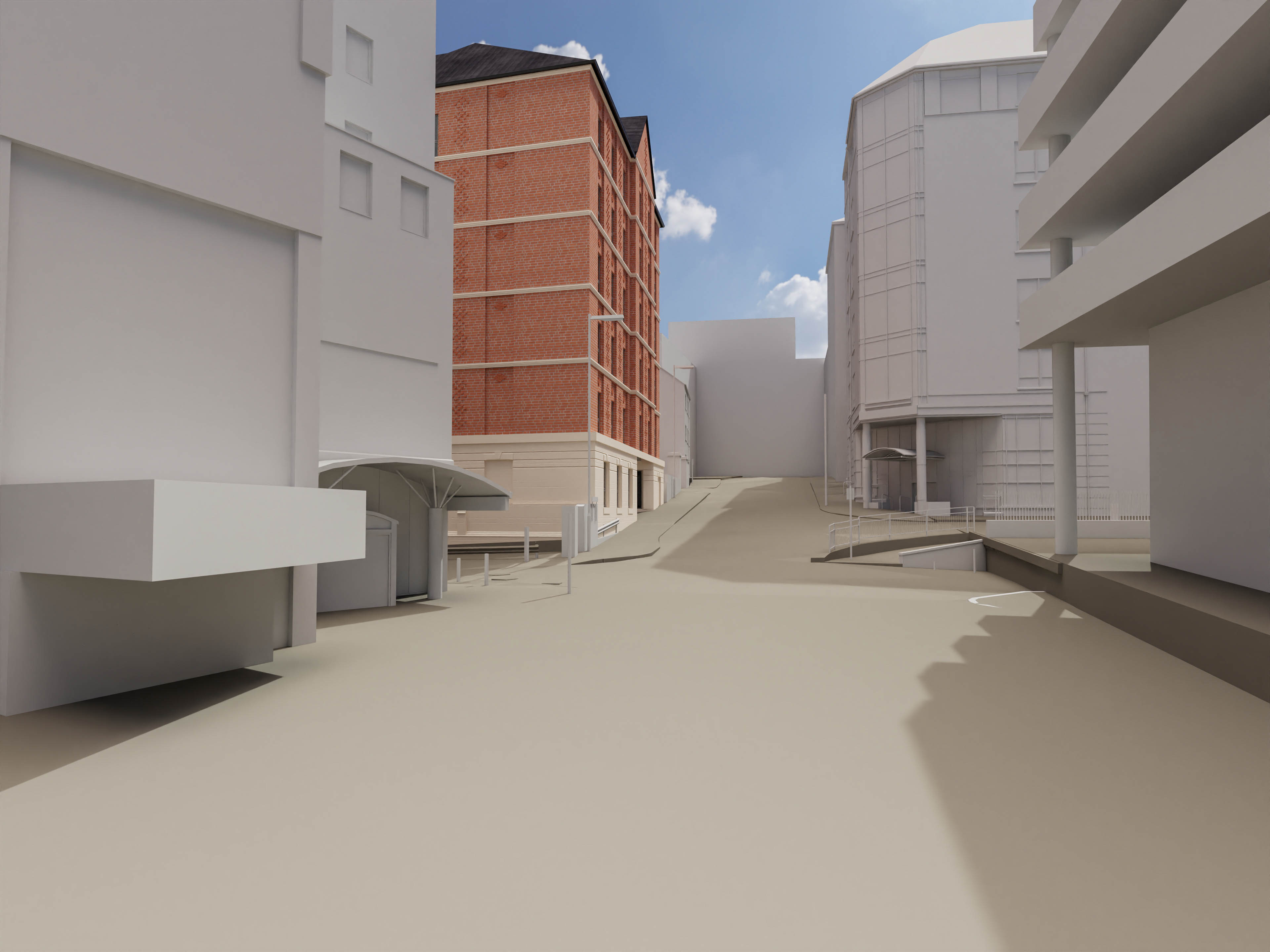 Photorealistic architectural visualisation for the Mount Street predevelopment in Nottingham, with editorial-quality treatment for planning presentations.